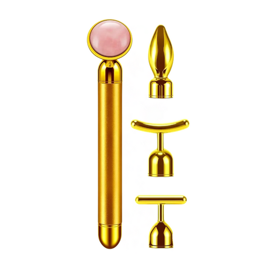 VitaLift - Luxuriöser 4-in-1 Beauty-Roller aus Rosenquarz und Jade mit Liftingaufsätzen – glättet Falten, strafft Gesichtszüge & verleiht frischen, natürlichen Teint